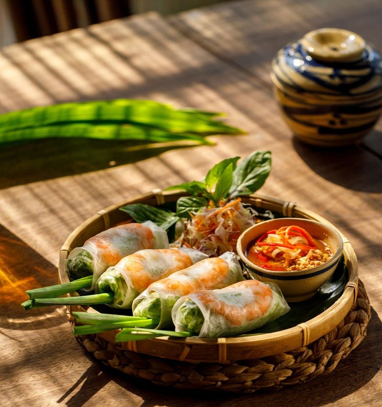Dans une feuille de riz, roulez les légumes de votre choix, les herbes fraîches qui apportent tant d'arômes et ajoutez de la gourmandise avec de la viande ou du poisson.